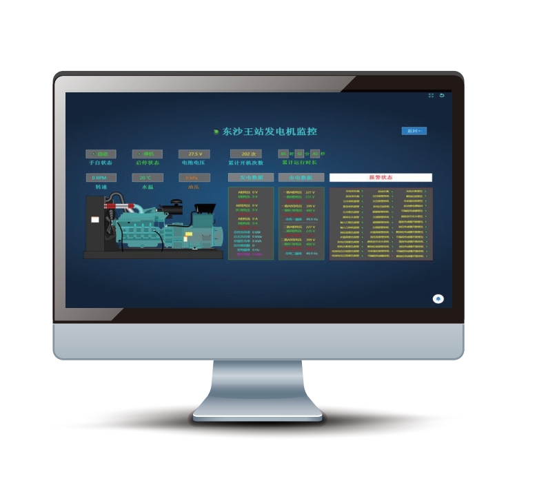 应急发电机集中监控系统由发电机监控装置和集中监控中心组成。发电机监控装置采集每台发电机、发动机的数据以及运行工况,通过无线或者有线的通讯方式实时传输至集中监控中心。